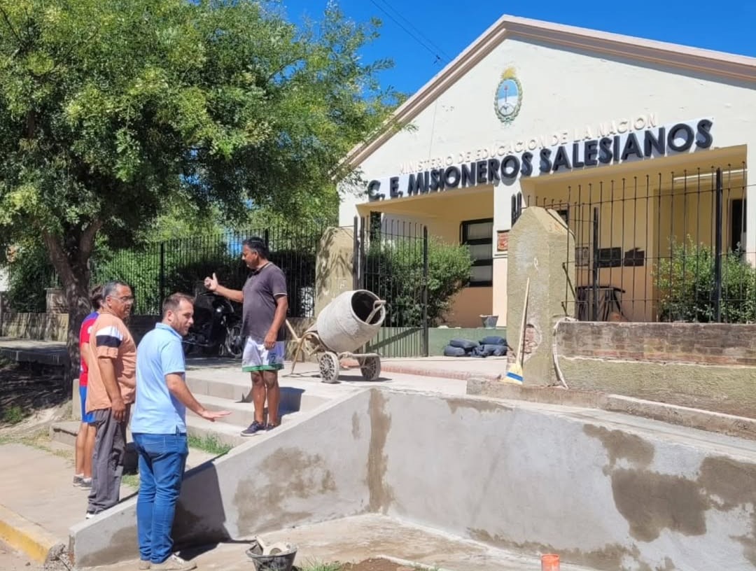 El secretario de Gobierno, Pablo Jesús Tosto, realizó un recorrido por los centros educativos para verificar el estado de las intervenciones. En el colegio Misioneros Salesianos, se construye una rampa de acceso que se encuentra en su etapa final de ejecución. Además, en conjunto con la Cooperadora, se llevó a cabo la pintura del frente del Jardín de Infantes, brindando una renovación estética al establecimiento.