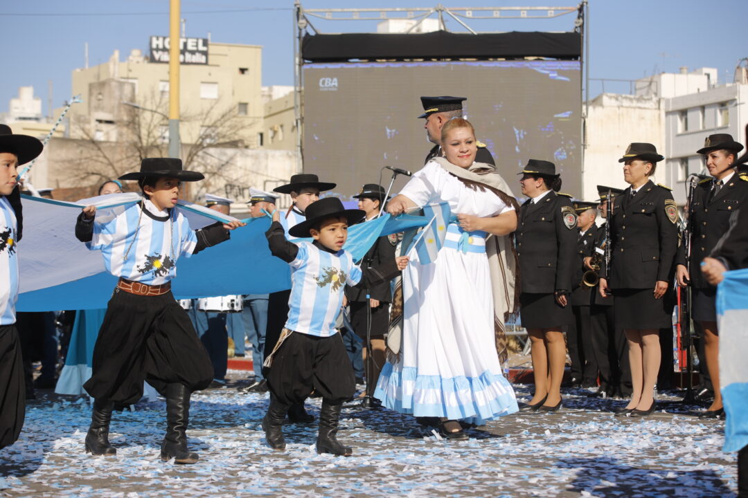 Seguidamente, las celebraciones comenzaron con las estrofas del Himno Nacional Argentino interpretadas al unísono por las bandas de música del Ejército Argentino, la Fuerza Aérea, la Policía de la Provincia de Córdoba, el Servicio Penitenciario de la Provincia y el Liceo General Paz.