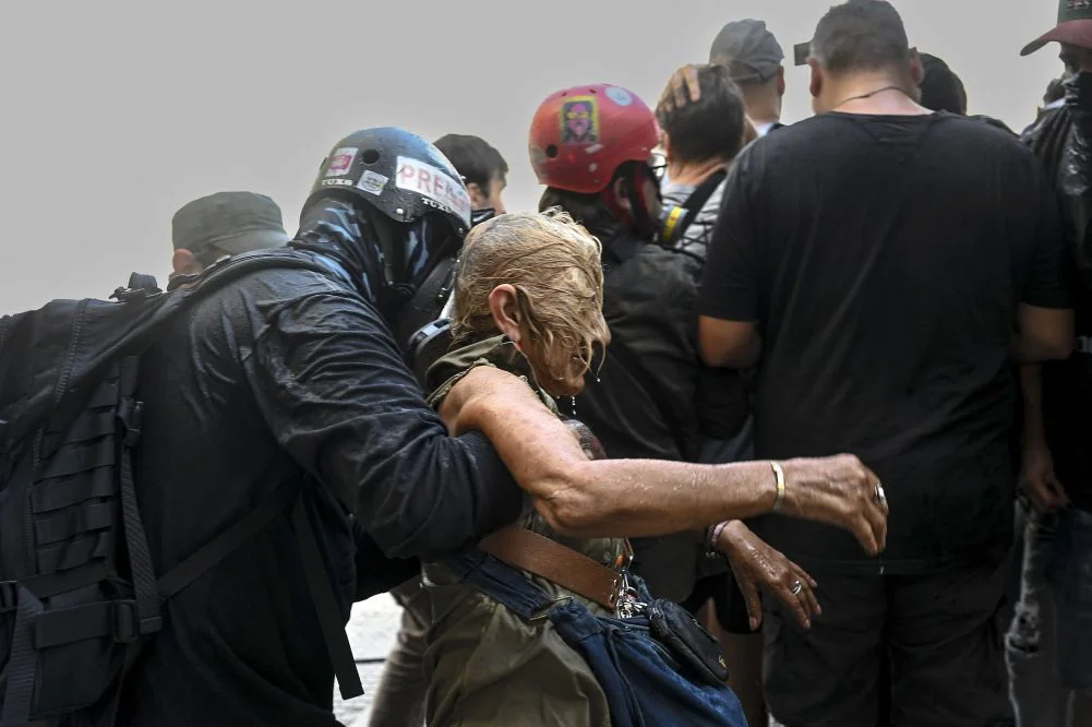 La Policía abocada al operativo de seguridad en las inmedicaciones del Congreso repreimió a manifestantes con camiones hidrantes y gases lacrimógenos, luego de que estos arrojaran piedras y botellas contra los uniformados.
