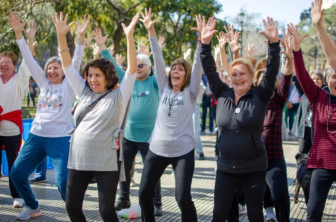 Con música, yoga, baile y mucha alegría, los adultos mayores afiliados y también los no afiliados al PAMI se congregaron en la plaza central de Río Cuarto para celebrar el Día de la Persona Jubilada.
