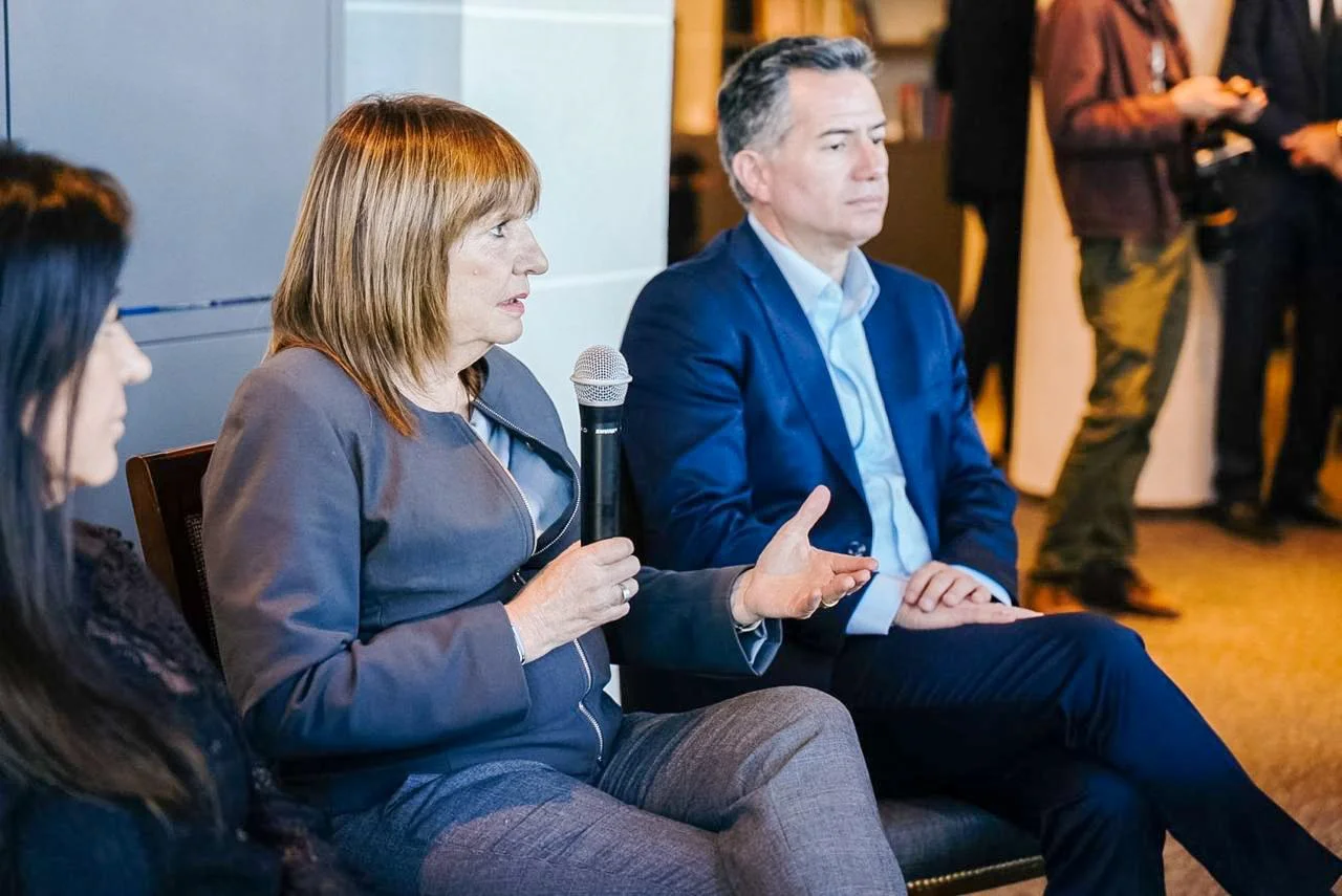 Bullrich participó de la actividad en el marco de una disertación en la Bolsa de Comercio, acompañada por referentes del espacio como Gabriel Bornoroni y Laura Rodríguez Machado.