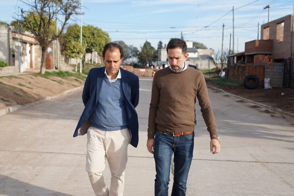 El intendente Juan Manuel Llamosas junto al secretario de Obras Públicas Martín Cantoro supervisó el avance de las obras de pavimento en la zona oeste de la ciudad.