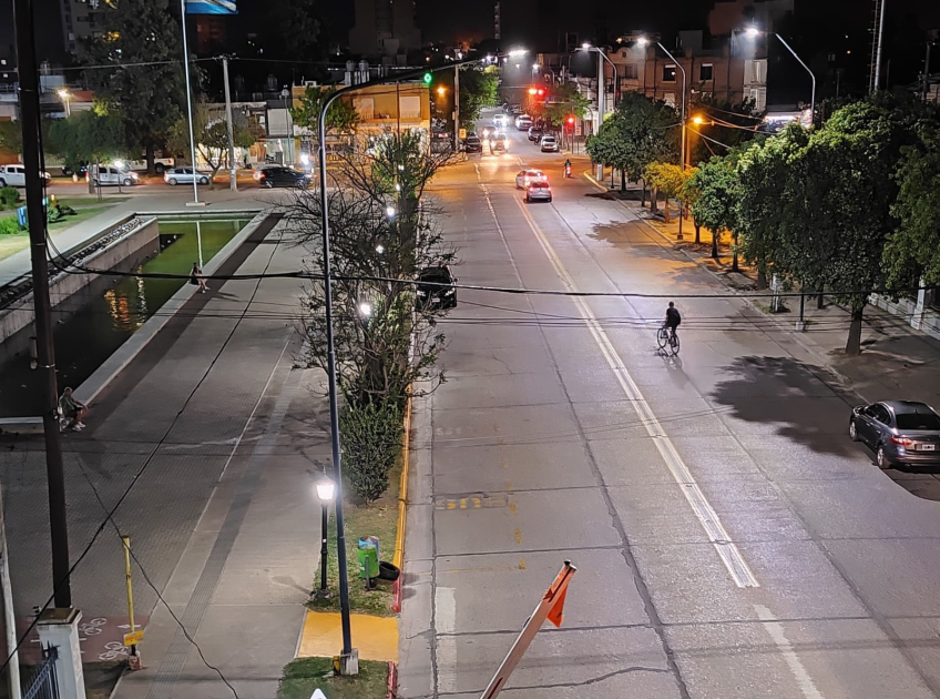 La Municipalidad, a través de la Dirección de Electricidad, Alumbrado Público y Semaforización perteneciente a la Secretaría Infraestructura, Desarrollo Urbano y Ambiente, se encuentra trabajando en el recambio de luminarias por luces con tecnología LED e instalación de nuevas columnas, sobre calle San Juan, entre bulevar Italia y España.