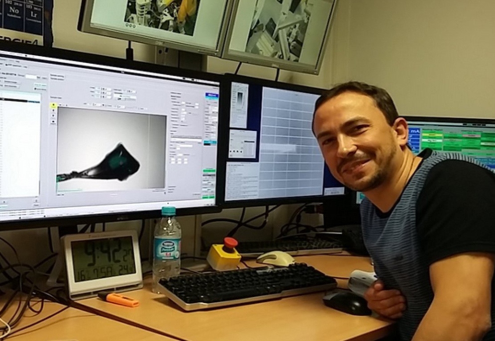 Lisandro Otero, uno de los autores del trabajo, tomando datos en el Sincrotrón SOLEIL de Francia, un acelerador de partículas.