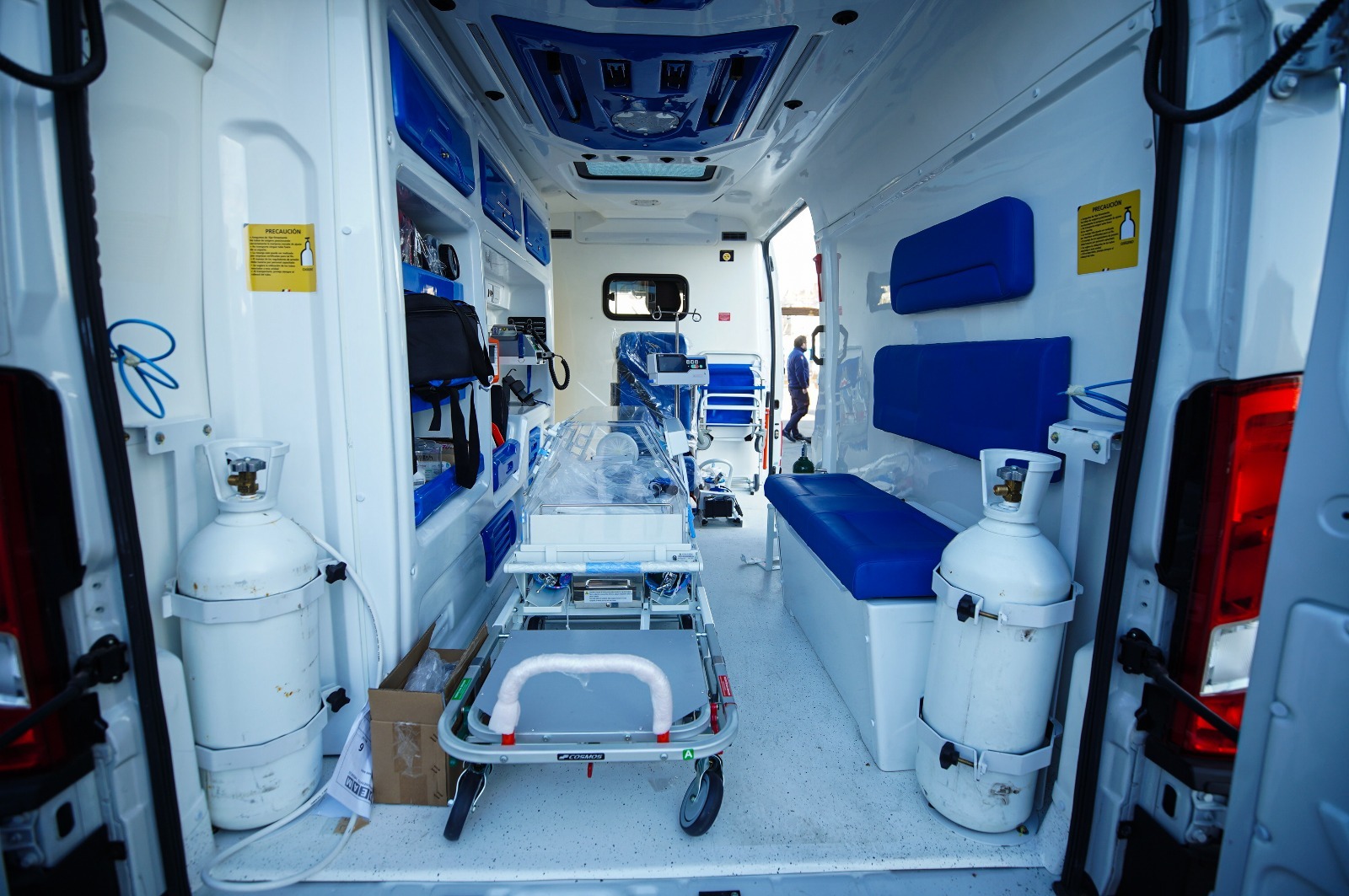 Las ambulancias están equipadas con tecnología médica de última generación, incluyendo desfibriladores portátiles, electrocardiógrafos, sistemas de oxigenoterapia fija y portátil, equipos de asistencia respiratoria para manejo de vía aérea, aspiradores, oxímetros de pulso, y elementos de inmovilización como tablas raquis, férulas, collares cervicales y sillas de ruedas.