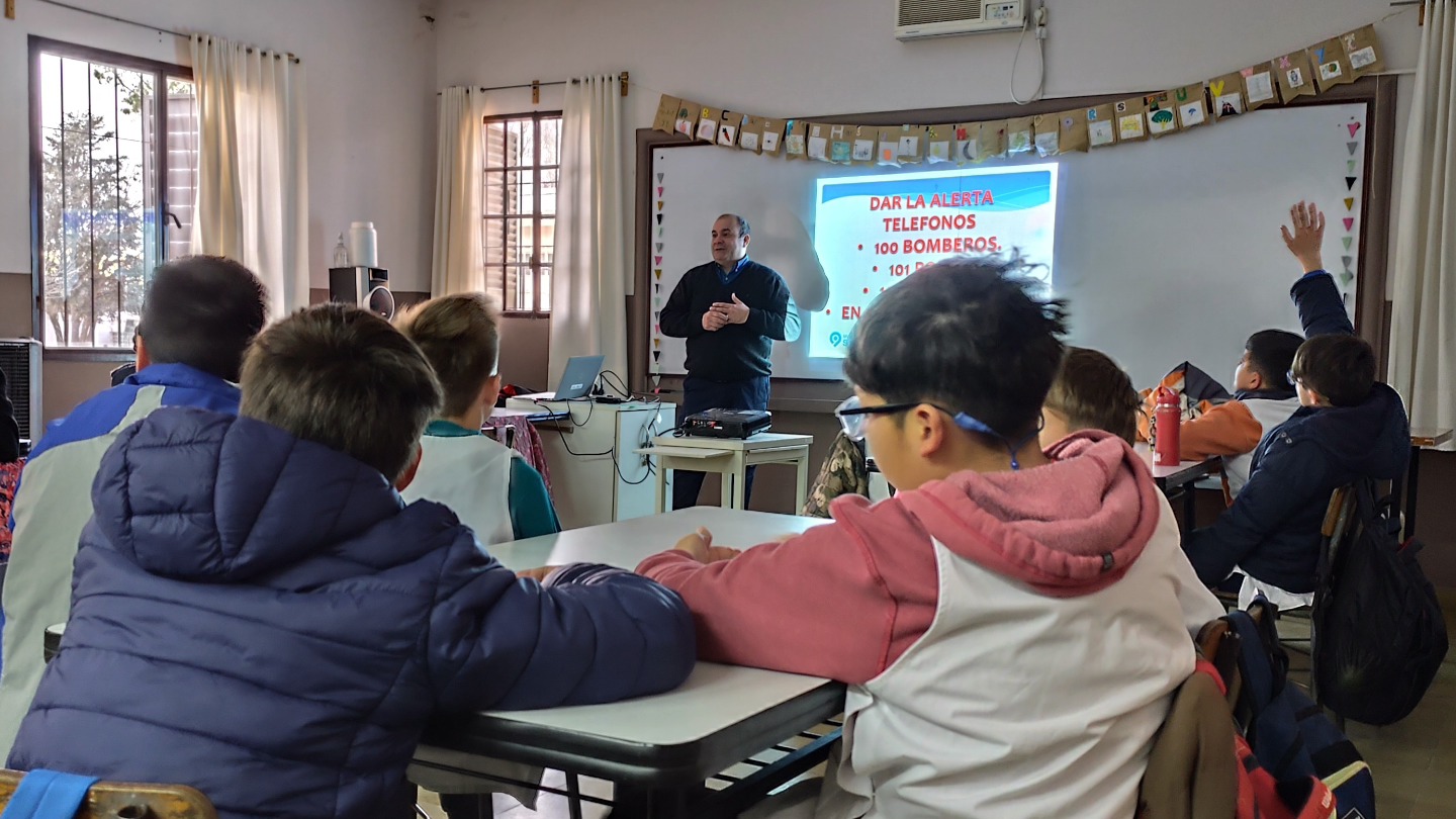 Con una visita al colegio San Martín, profesionales de acción en emergencia se dirigieron a estudiantes de 5to y 6to grado. El foco está en la evacuación frente a eventualidades.