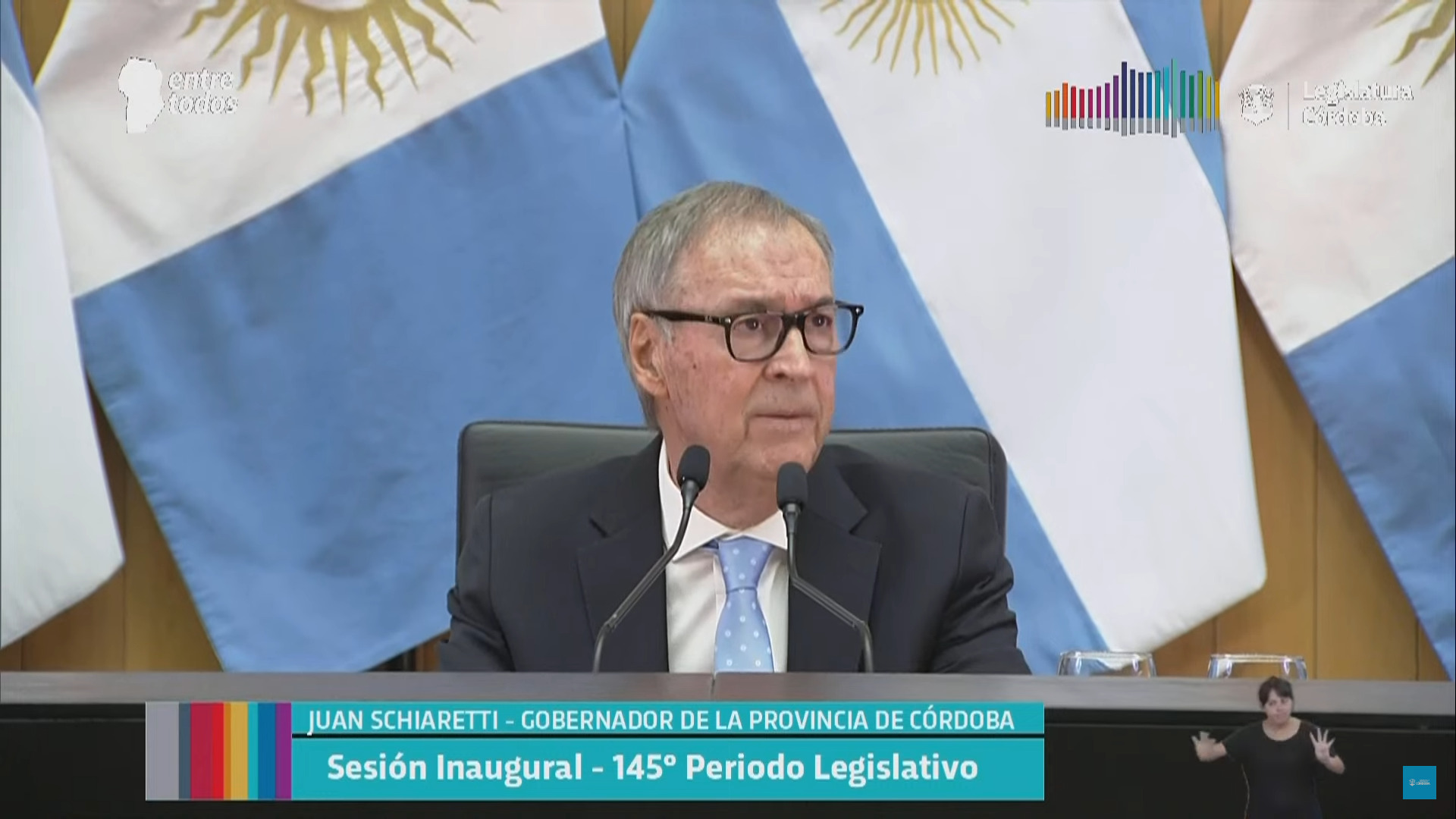 El gobernador Juan Schiaretti emite su discurso por el 145° período de sesiones legislativas en el edificio de la Unicameral, dando cumplimiento a lo establecido por la Constitución provincial.
