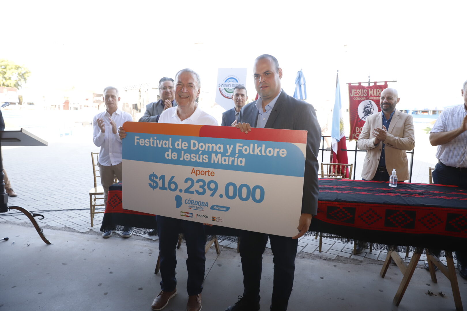 El gobernador de Córdoba, Juan Schiaretti, entregó ayer aportes para el Festival Nacional de Doma y Folklore de Jesús María, en su 57ª edición. La ayuda de la Provincia asciende a 16.239.968 pesos.