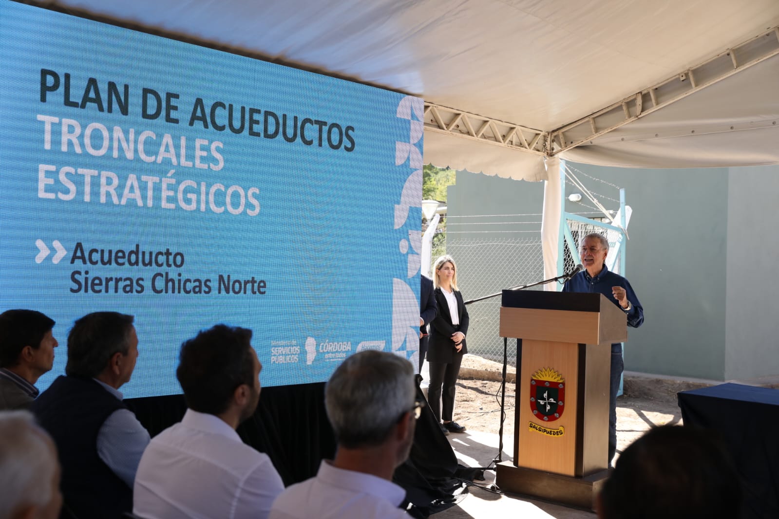 Por su parte, el ministro de Servicios Públicos, Fabián López, sostuvo que esta obra abastece a la zona desde tres fuentes independientes. “Es la apuesta a resolver definitivamente el problema del agua potable en esta importante zona del conurbano cordobés de Sierras Chicas o Sierras Chicas Norte” y explicó que “todo este sistema va a quedar triplemente abastecido por el río Suquía a través de las plantas Calera, La Quebrada, y de este nuevo acueducto que estamos habilitando”.