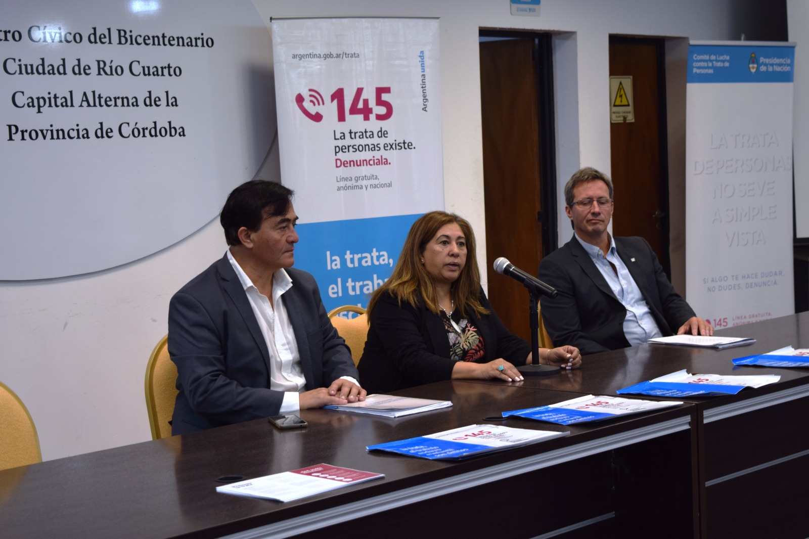 El evento estuvo encabezado por la delegada del Polo Integral de la Mujer, Adriana Oviedo; el delegado provincial del Comité Nacional de Lucha Contra la Trata de Personas, Rodolfo Pérez; y el integrante del equipo técnico de dicho Comité, Luis Irigoyen.