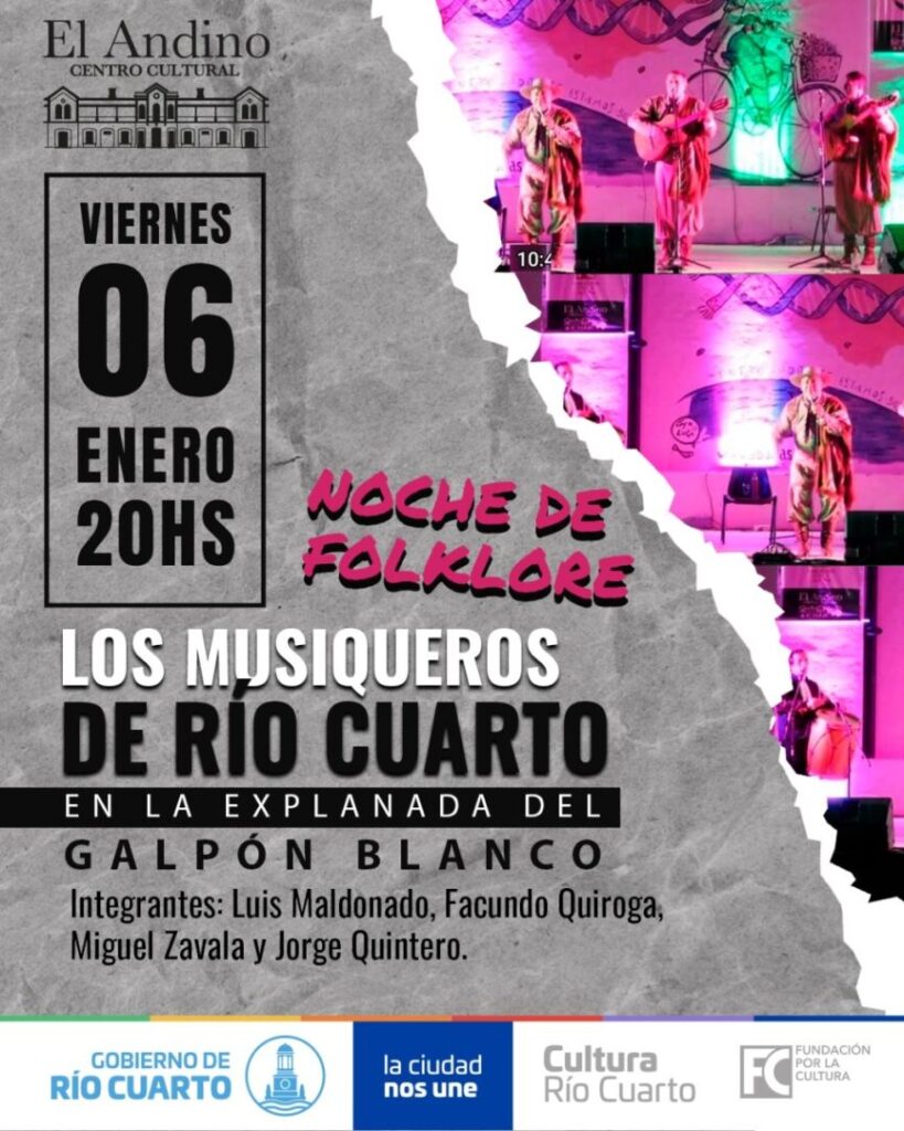 «El jueves inicia con Tango en la herradura del Andino, el viernes 6 con Folclore en la Explanada del Galpón Blanco, el sábado 7 habrá una propuesta de Rock con la banda “3 ventanas” en la Herradura, el domingo comenzará Solo Canto a las 19:30 en el Parque Sarmiento, los domingos próximos se realizaran artes escénicas en la Explanada del Galpón Blanco. “