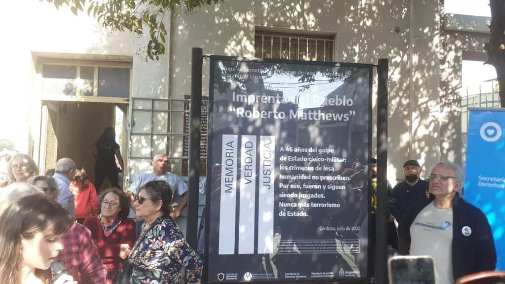 Tras obras de mantenimiento, el espacio fue bautizado como «Casa de la Memoria Imprenta del Pueblo Roberto Matthews»: un inmueble ubicado en el barrio Observatorio, que significa un testimonio vivo de la resistencia a la dictadura y de acompañamiento de las luchas del presente.