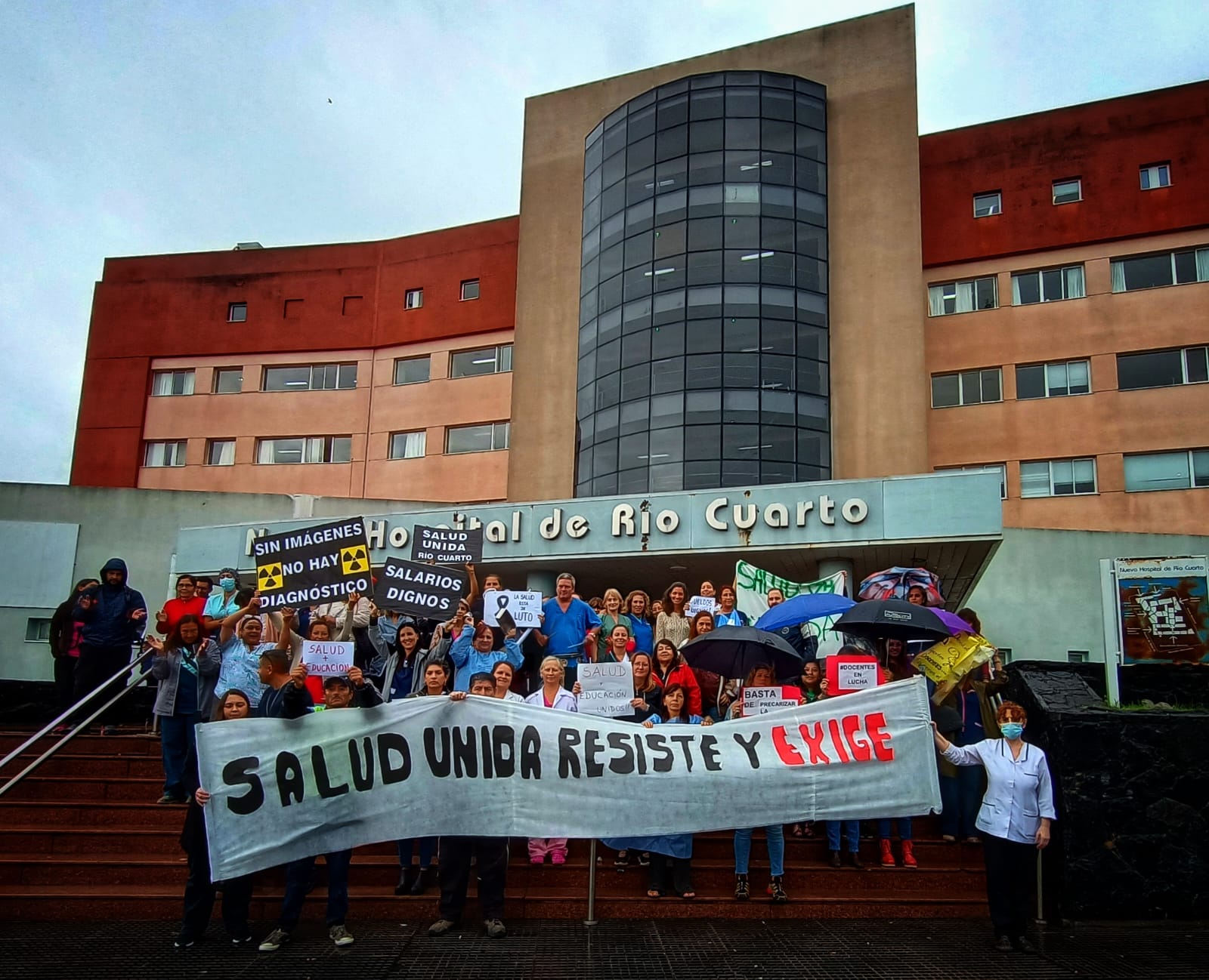 La lluvia no fue impedimento para que los trabajadores del Hospital San Antonio de Padua volvieran a manifestarse en rechazo a las ofertas salariales del Gobierno y en pedido de mejores condiciones laborales.