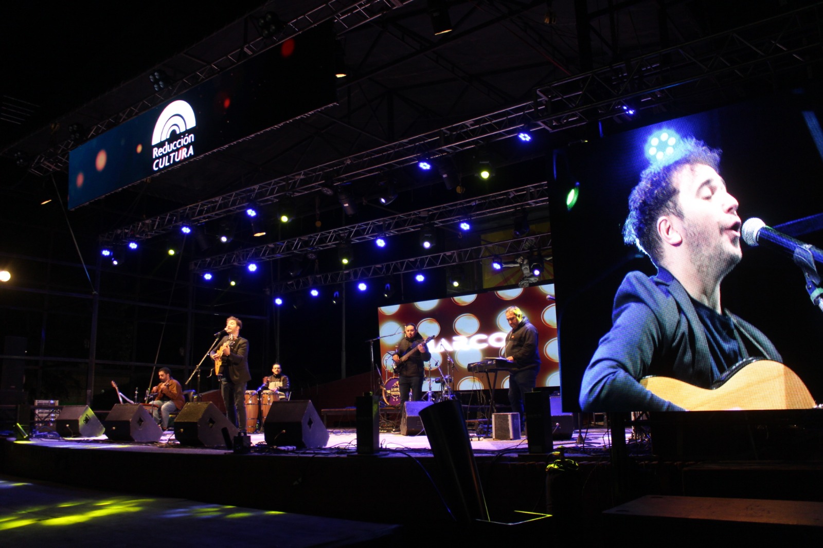 En el pleno frío de la noche, Marcos Scodelari se subió al escenario de la localidad para deleitar a todos los presentes con su voz. Pero no lo hizo solo, sino que estuvo acompañado de una banda de músicos amigos.