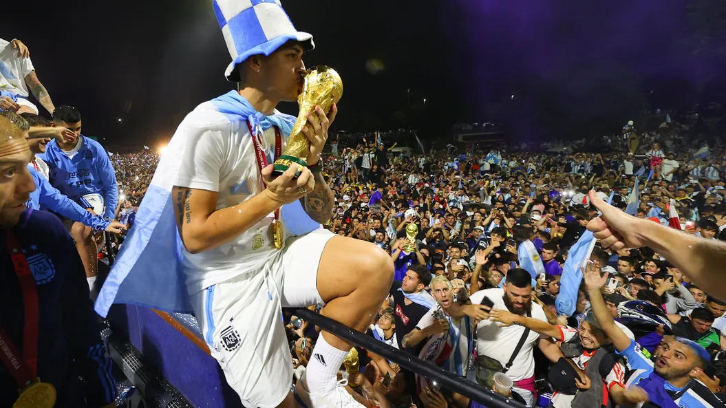 Una multitud recibió a la Selección argentina este martes a la madrugada luego de salir campeón del Mundial Qatar 2022.