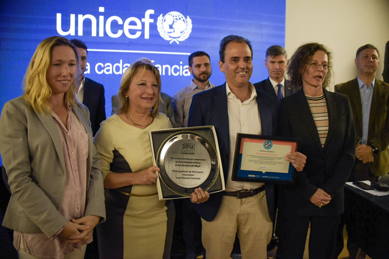 El intendente Juan Manuel Llamosas recibió el reconocimiento de UNICEF Argentina que calificó a Río Cuarto como “Municipio Comprometido con la Niñez”, luego de haber cumplido con la primera etapa de la iniciativa “Municipio Unido por la Niñez y la Adolescencia (MUNA)”.