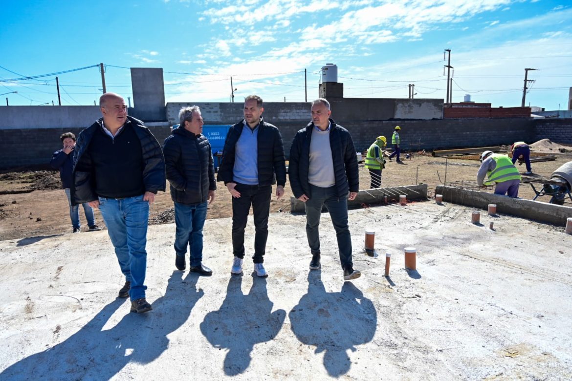 El intendente Martín Gill, junto al secretario de Ambiente, Obras y Servicios Públicos, Omar Regueira, y su homólogo de Educación, Cultura y Promoción de la Ciencia, Rafael Sachetto, supervisaron el avance de la obra del nuevo Centro de Desarrollo Infantil (CDI), ubicado en el barrio Padre Mugica.