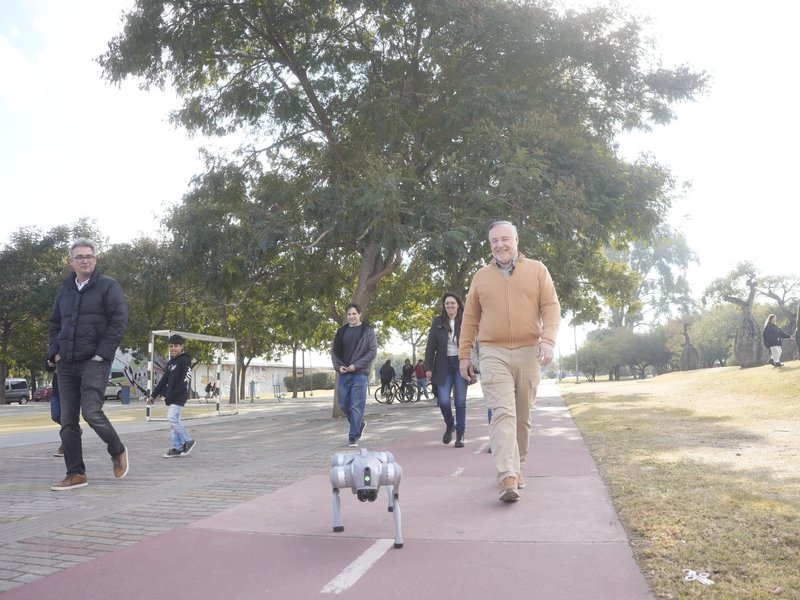 El intendente Eduardo Accastello recorrió ambos espacios del Parque de la Vida y presentó a Lassiteca, un innovador perro robot con inteligencia artificial que se suma a los atractivos de la Tecnoteca para que niños y jóvenes experimenten nuevas formas de aprendizaje e interacción tecnológica.