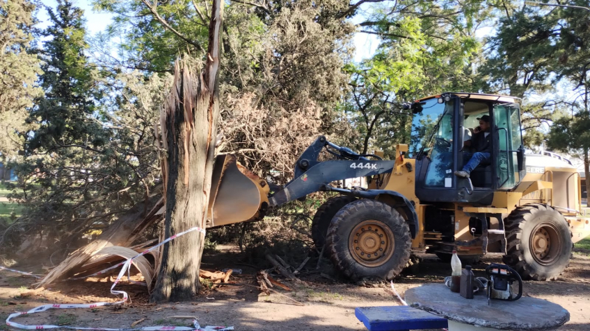 Entre los lugares afectados se encuentra la zona de juegos infantiles junto al tradicional carrusel, emplazado en el Parque de la Vida, donde un árbol de gran porte fue desprendido de raíz.